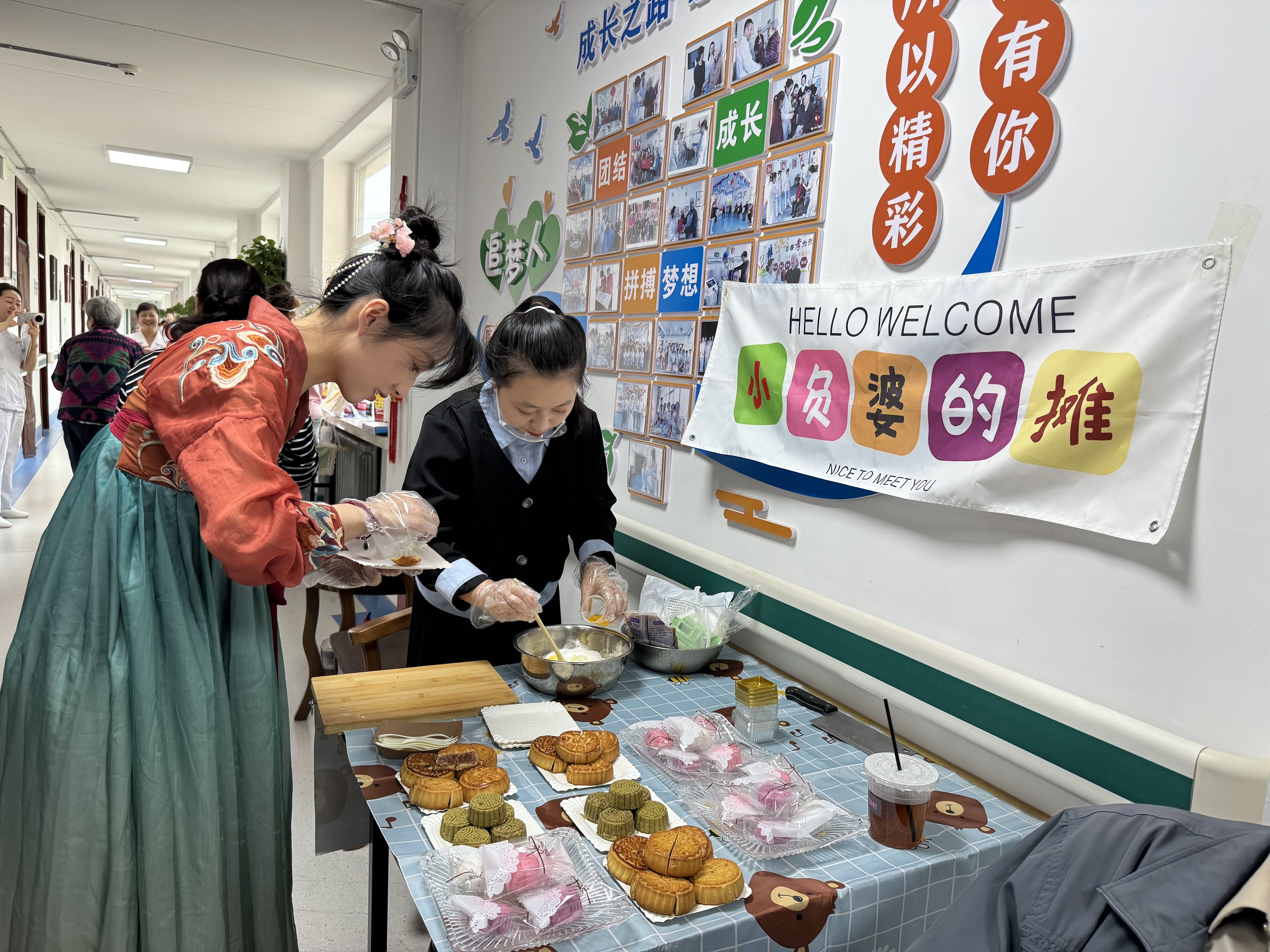 “手工月饼摊位”由工作人员纯手工制作月饼,匠心独运,每一款都是艺术品,让老人们大饱眼福又满足味蕾。