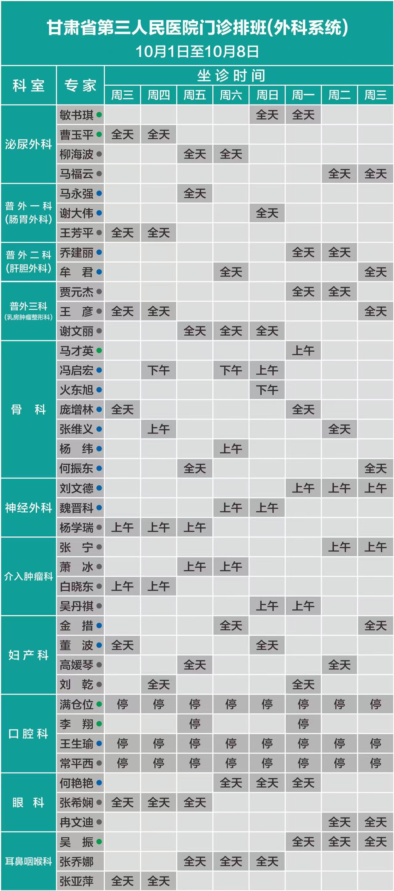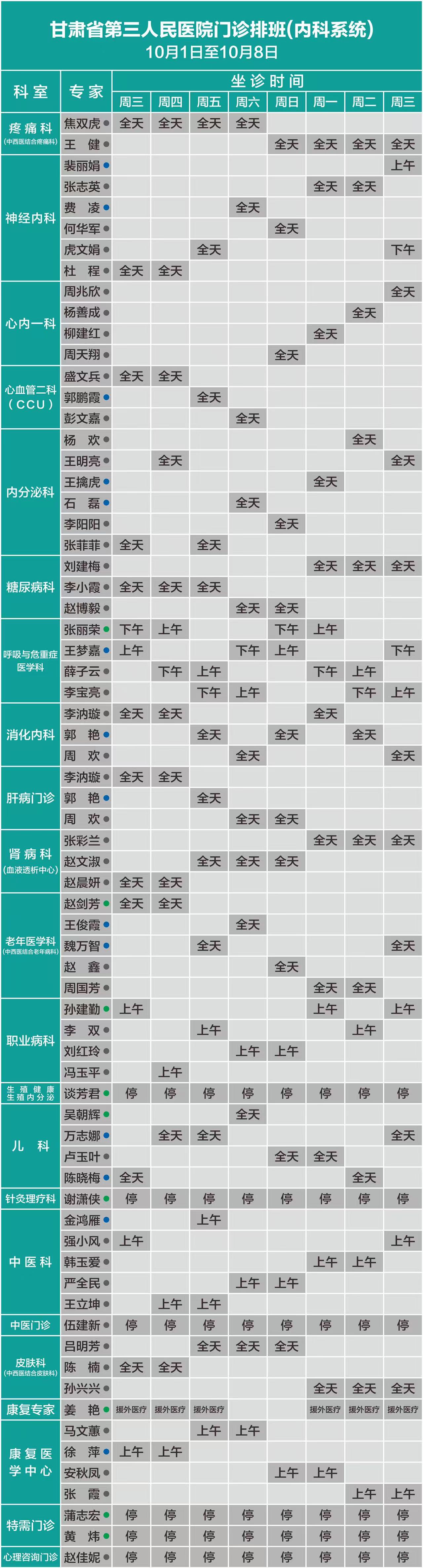 无假日医院!甘肃省第三人民医院国庆、中秋门诊排班(10.1——10.8)